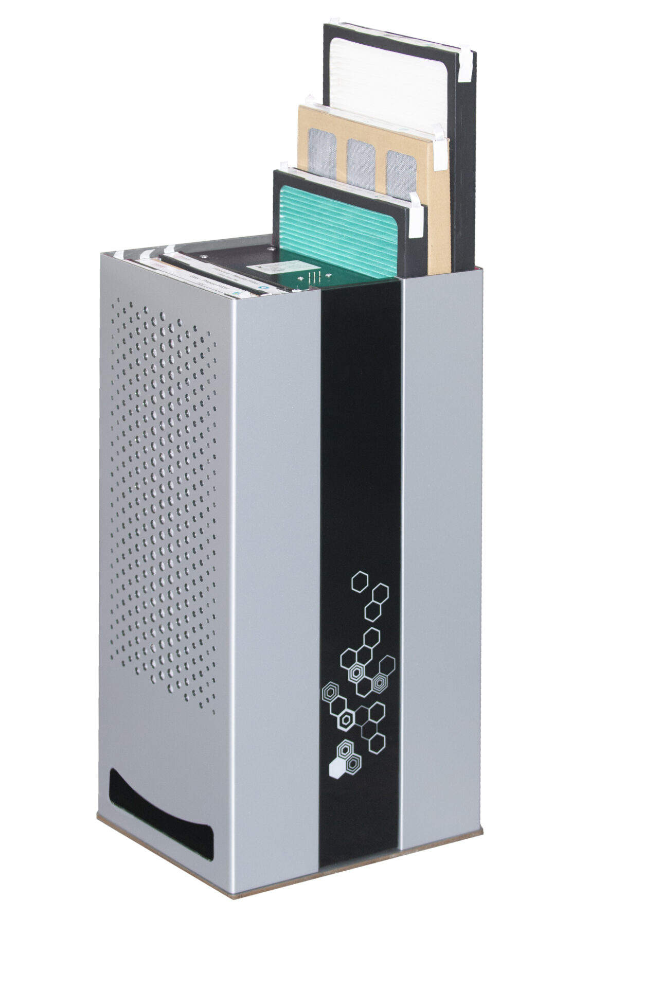 طراحی این محصول مبتنی بر تکنیک فیلتراسیون محض (بدون تولید و انتشار ازن) با استفاده از فیلترهای الیافی هپا و جاذب گرانولی کربن اکتیو است. سطح فیلترهای الیافی و نیز جرم کربن اکتیو بکار رفته در این مدل در مقایسه با اکثر محصولات مشابه بسیار بیشتر است که از این رو عمر فیلترها و دوره تعویض آنها را طولانی تر میکند. از دیگر برتری های این محصول استفاده از فیلتر الیافی چین خورده با سطح موثر زیاد با گرید G4 است.